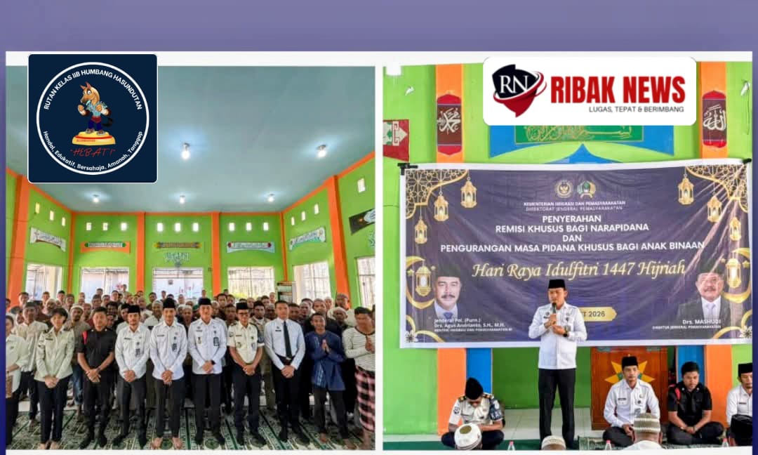 Momentum Hari Raya Idul Fitri 1447 Hijriah di Rumah Tahanan Negara (Rutan) Kelas IIB Humbang Hasundutan menjadi titik balik bagi ratusan warga binaan pemasyarakatan (WBP). Sebanyak 340 narapidana menerima remisi, dengan 6 orang di antaranya langsung menghirup udara bebas usai mendapatkan pengurangan masa pidana.