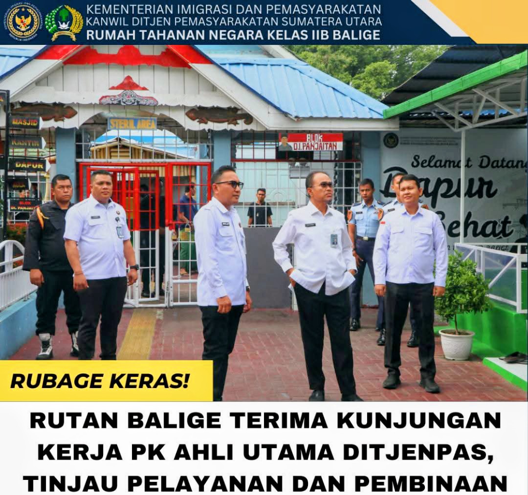 Kunjungan kerja PK Ahli Utama Ditjenpas, Ajub Suratman, ke Rutan Kelas IIB Balige menjadi pengingat bahwa profesionalisme, integritas, dan kedisiplinan harus selalu dijunjung tinggi oleh seluruh jajaran pemasyarakatan. Dengan semangat RUBAGE KERAS! (Kolaboratif, Edukatif, Responsif, Amanah, dan Sinergi), Rutan Balige diharapkan terus berkembang sebagai institusi yang tidak hanya menjaga keamanan, tetapi juga memberi harapan baru bagi warga binaan.