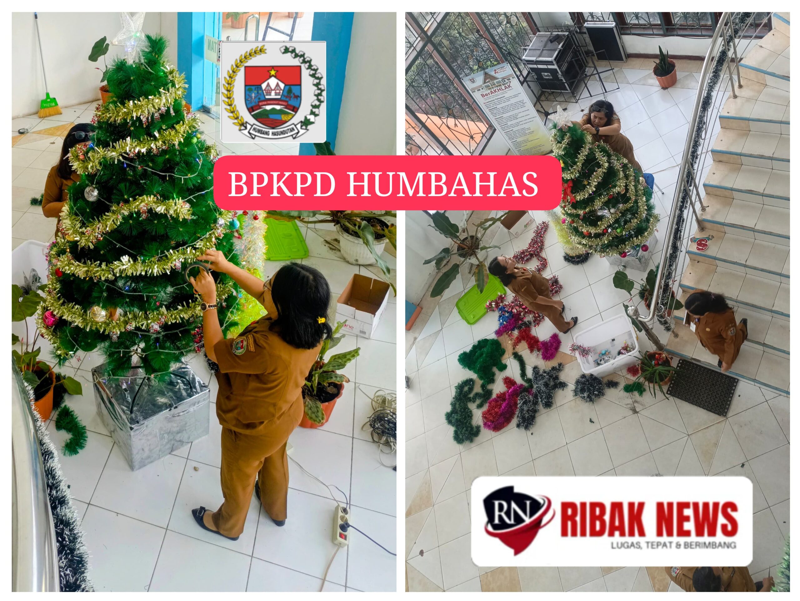 Menjelang perayaan Natal 25 Desember 2025, suasana penuh sukacita mulai menyelimuti Badan Pengelola Keuangan dan Pendapatan Daerah (BPKPD) Kabupaten Humbang Hasundutan. Senin siang (8/12/2025), lobi kantor mendadak berubah menjadi “zona Natal” setelah para pegawai kompak menghias pohon Natal besar dengan lampu kelap-kelip dan ornamen warna-warni.