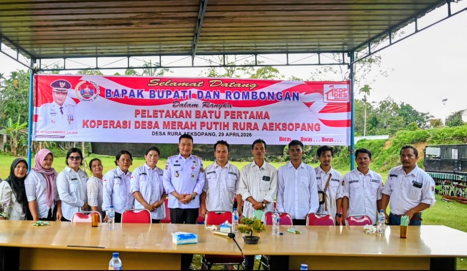 Dalam sambutannya, Bupati Oloan Paniaran Nababan menyampaikan bahwa pembangunan KDMP merupakan langkah strategis pemerintah dalam memperkuat ekonomi desa melalui pengembangan koperasi yang berbasis kebutuhan masyarakat.