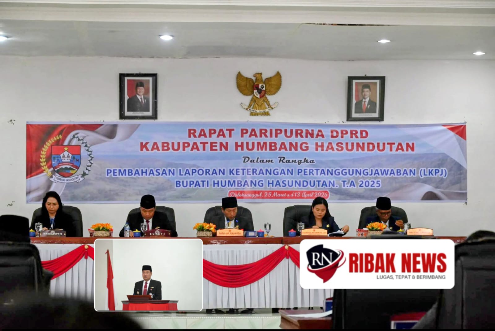 Dewan Perwakilan Rakyat Daerah (DPRD) Kabupaten Humbang Hasundutan menggelar rapat paripurna dalam rangka penyampaian rekomendasi atas Laporan Keterangan Pertanggungjawaban (LKPj) Bupati Tahun Anggaran 2025 di Kantor DPRD, Senin (13/4/2026).