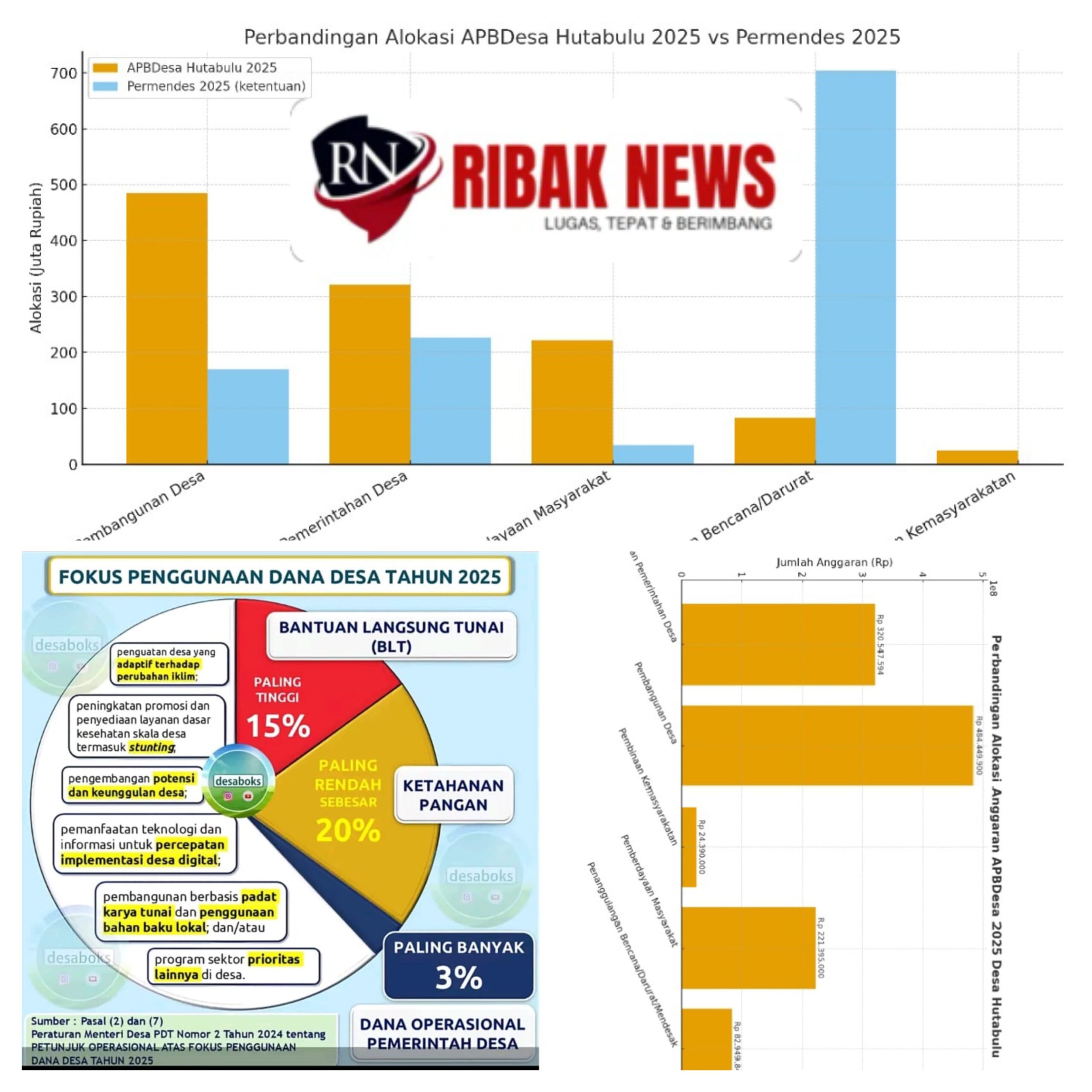 Perbandingan antara APBDesa Hutabulu 2025 dan Permendes 2025 menunjukkan adanya potensi ketidaksesuaian. Pembangunan fisik yang terlalu besar porsinya menjadi kejanggalan utama yang harus segera dievaluasi.