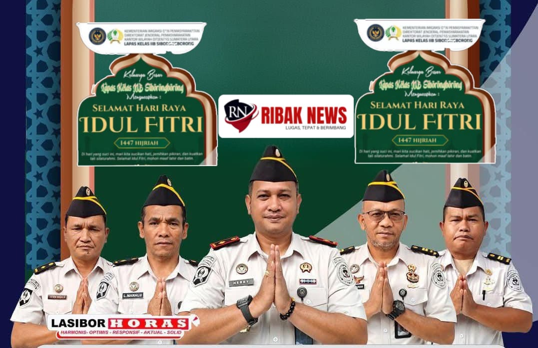 Keluarga besar Lembaga Pemasyarakatan (Lapas) Kelas IIB Siborongborong menyampaikan ucapan Selamat Hari Raya Idul Fitri 1447 Hijriah/2026 Masehi kepada seluruh masyarakat, sebagai wujud kebersamaan dalam momentum hari kemenangan umat Islam.