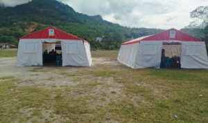 Penempatan tenda darurat sebagai alternatif ruang kelas sementara.