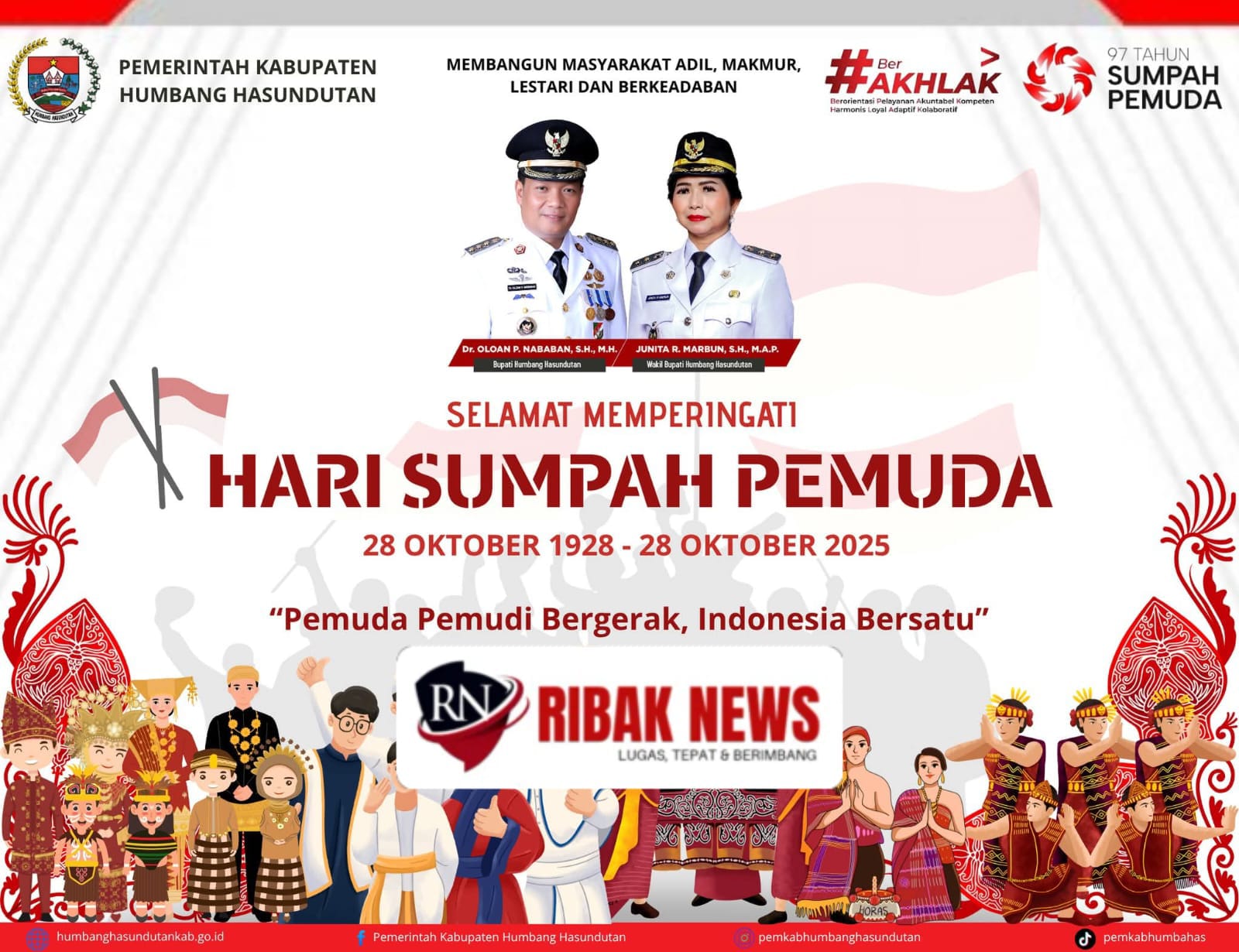 Pemerintah Kabupaten Humbang Hasundutan di bawah kepemimpinan Bupati Dr. Oloan P. Nababan, S.H., M.H. dan Wakil Bupati Junita R. Marbun, S.H., M.A.P. mengucapkan selamat memperingati Hari Sumpah Pemuda ke-97 Tahun 2025, dengan mengusung semangat nasional “Pemuda Pemudi Bergerak, Indonesia Bersatu.”