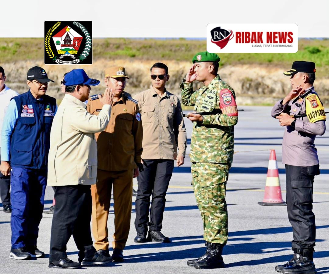 Presiden Republik Indonesia Prabowo Subianto tiba di Bandara Internasional Silangit, Siborong-borong, Senin (01/12/2025), untuk meninjau langsung kondisi banjir dan longsor yang melanda berbagai wilayah di Tapanuli Raya. Kehadiran Presiden disambut jajaran Forkopimda Tapanuli Utara, yakni Bupati Dr. Jonius Taripar Parsaoran Hutabarat, S.Si., M.Si., Kapolres Taput AKBP Ernis Sitinjak, S.H., S.IK., serta Dandim 0210/TU Letkol Kav Ronald Tampubolon, S.H., M.Han.