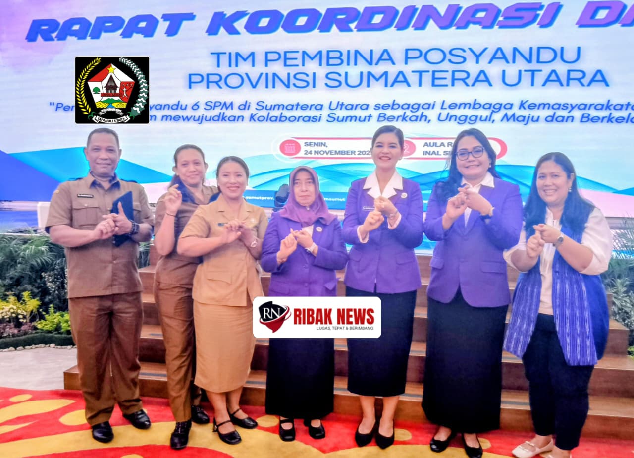 Ketua Tim Pembina Posyandu Kabupaten Tapanuli Utara, Ny. Neny Angelina JTP Hutabarat, bersama Plt. Kepala Dinas Pemberdayaan Masyarakat dan Desa (PMD) Satya Dharma Nababan, menghadiri Rapat Koordinasi Daerah (Rakorda) Posyandu tingkat Provinsi Sumatera Utara yang digelar di Aula Raja Inal Siregar, Kantor Gubernur Sumatera Utara, Medan, Senin (24/11/2025). Rakorda ini dibuka secara resmi oleh Ketua TP Posyandu Provinsi Sumatera Utara, Ny. Kahiyang Ayu Bobby Nasution.