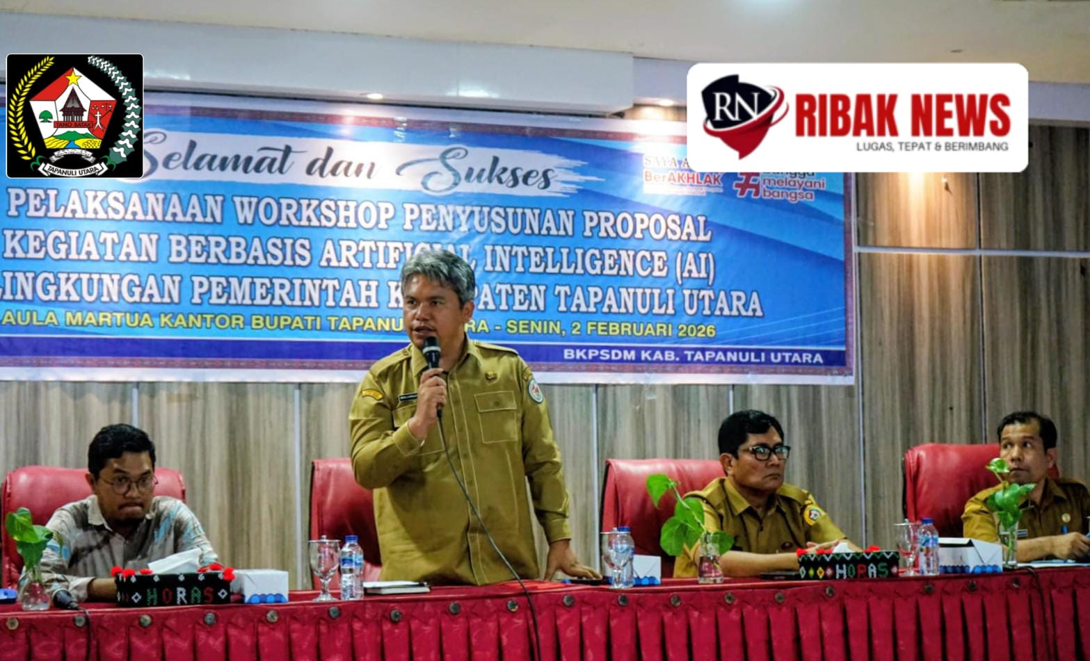 Pemerintah Kabupaten Tapanuli Utara terus memperkuat agenda transformasi digital birokrasi sebagai bagian dari upaya peningkatan kualitas tata kelola pemerintahan. Komitmen tersebut diwujudkan melalui Workshop Penyusunan Proposal Kegiatan Berbasis Artificial Intelligence (AI) atau Kecerdasan Buatan, yang secara resmi dibuka oleh Wakil Bupati Tapanuli Utara Dr. Deni Parlindungan Lumbantoruan, M.Eng, didampingi Sekretaris Daerah Drs. Henry M. M. Sitompul, M.Si serta Pelaksana Tugas (Plt.) Kepala BKPSDM Jenri Simanjuntak, bertempat di Aula Martua Kantor Bupati Tapanuli Utara, Tarutung, Senin (2/2/2026).